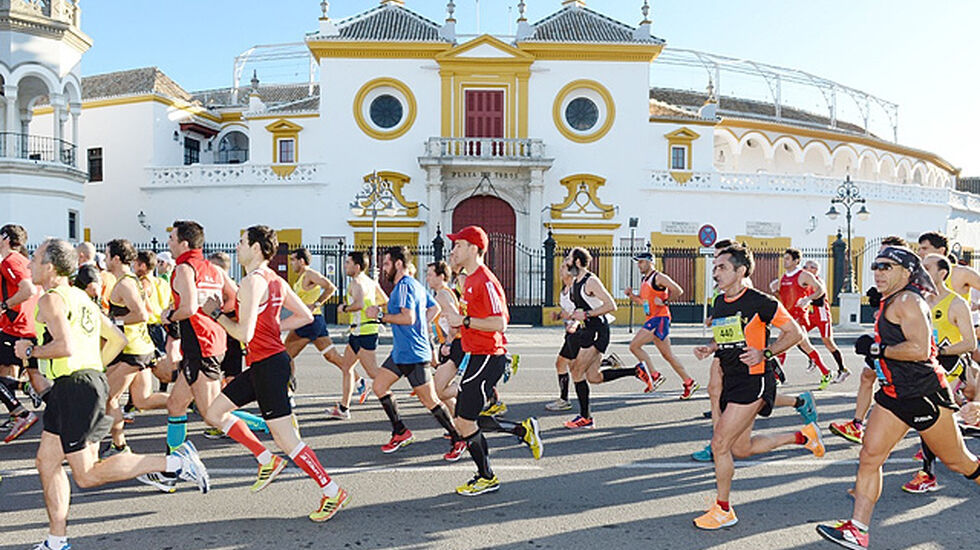 Bildet. Feltet løper forbi tyrefekterarenaen i Sevilla i fjor hvor det også ble gode norske plasseringer (Foto: Kjell Vigestad)