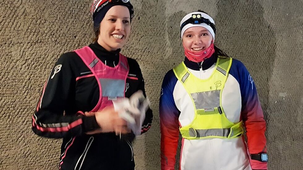 Dina Dæhli (til venstre) og Heidi Syversen etter endt dyst i Snøkuten tirsdag kveld. (Foto: Stein Arne Negård)