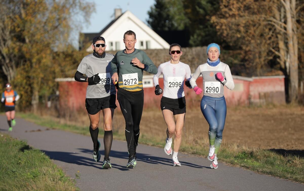 Henrik Raagaard har følge med flere damer på det vi annonserte som en suveren ny aldersrekord i M75-59. Det viste seg at han brøt løpet etter 35 km. Rekorden har han selv fra tidligere.(Foto: Bjørn Hytjanstorp)