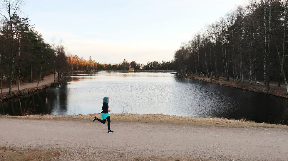 Det er lett å kjenne igjen Fairuz der hun kommer løpende til stedet vi har avtalt å møtes, ved 2. dam i Fredrikstad. Hun har et godt og lett steg.