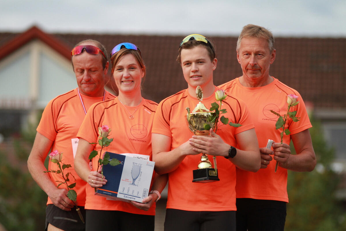 Furutangens lag vant stafetten med Åslia Skilag hakk i hæl tidsmessig, men det var mange andre priser å kjempe om for i dette gratis lavterskel-tilbudet midt i Rena sentrum. Løypa bnestog av fem etapper i en 870 m lang runde på flat asfalt og dermed overkommelig for alle bedrifter, lag, foreninger og andre konstellasjoner som kunne stable fem løpere på bena.
