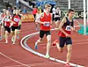 Jentene i det første heatet er akkurat ferdig med den første svingen som gikk i delte baner.