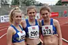 De tre Gneistjentene Thyra Hevrøy, Eline Myking og Ingrid Næss Johansen før start på 1500 m hinder.