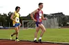 Starten for årets Nordiske Mesterskap i kappgang har gått. Fellesstart for både 10.000 og 20.000 m på Halden Stadion. (Alle foto: Bjørn Johannessen)