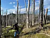 Vi finner igjen PCT ved Shelter Cove Lodge. Vi har passert mange områder med brent skog, og også campet i slike områder. Det var rart å ligge i teltet om natta og høre på skogen som knaker. Vi går også gjennom områder der det ligger en opphopning av tørr brennbar skog. Vellykket brannredning med hogging av branngater fører ironisk nok til ny brannfare.