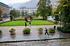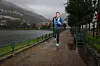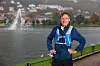 Vi avslutter vårt møte med Robert med å ta bilder av ham der jobbløypen hans passerer ved Lille Lungegårdsvann. Klokken 17 løper han av gårde hjemover.