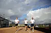 OBOS-kollegaene Erlend Wessel Carlsen, Martin Nonsdal og Jarle Naustvik bestemte seg for å bli de første til å løpe et fullverdig maraton på den 120 meter lange løpebanen som slynger seg over taket av Construction City.