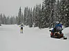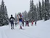 Etter en stund oppe i Kvarstadsæterlia begynte løperne å skrape skiene som kladdet etter at de hadde fått litt klister under skia på Kvarstadsætera. Været var vekslende med litt snødryss av og til som gjorde at skiene begynte å kladde.