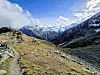 På solsiden mot vest er det fantastiske stier til fjelløping i frodig alpeterreng og også her er det god plass på stiene: På tre dager så vi knapt noen andre løpere eller turgåere. I godt vær er det mulig for fjellvante å gå opp flere av 4000-meterstoppene uten tau, men på grunn av mye snø da vi var der i slutten av september, måtte vi nøye oss med løping i «lavlandet» fra 1800 opp til 3500 moh. Ved kaldere vær anbefales spesielt stiene på solsiden/ vestsiden av dalen bak Hannig. De byr både på et frodig landskap og en nydelig utsikt.