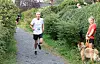 Gjennom boligområder. Det var mange tilskuere som heiet på løperne langs løypa som gikk gjennom flere boligområder. Trond Schreiner fra Lillehammer som kom på tredjeplass i klasse M 50 – 59 år har målet i sikte.Jørgen Skaug