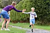High Five. Det var god stemning lang løypa. Her er det 13 år gamle Iver Risheim Kvam fra Søre Ål IL som blir oppmuntret med en High Five på veg mot mål.