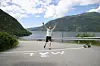 Rett etter Storadjuv bru har du løpt 7 km av Langs Åkrafjorden.