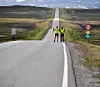 Route 66: Slik kaller de denne strekningen med innbydende asfalt og vei med 90 km's fartsgrense. Og med veien nesten for seg selv, så må dette se ut som en rulleskigåers paradis. Og hvor finner vi slike veier i Norge? Veistrekningen var tidlig på den lang turen før de kom til Alta. Vi bør vel nevne at den ene av de to rulleskiløperne, Gunnar Eiterjord, er samferdselssjef i Rogaland og er den naturlige løypesjefen på turen.