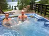Herlig: Etter 5-6 timer på rulleski smaker det ekstra godt med et boblebad. Gunnar Eiterjord til venstre og Ørjan Ravndal til høyre slapper av på Stetind Hotell.De fleste overnattingene er på hotell eller i campinghytter.