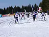 Bildet:Starten på stafetten i klasse menn 7. Norge sin startmann Erik Johansen helt til venstre i bildet med startnummer 708. (Arrangørfoto)