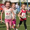 265 sprudlende barn løp 350 m og 232 mer seriøse jenter og gutter mellom 10 og 15 år løp 3 km. Simen Halle Haugen løp 3 kontrollmålte km på 9.43.