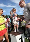 Denne lille frøkenen hadde stor glede av å stå på toppen av den høye pallen og tok i mot jubelen med suveren selvtillit, før hun like godt hoppet meteren rett ned fra pallen uten å miste verken medaljen eller drikkeflasken og tok et støtt nedslag. Etter det måtte alle de andre små prøve seg på det samme.