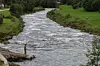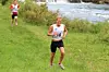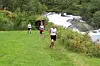 Korsbrekkeelva med laksefiskere på den ene siden og utøvere i Hellesyltløpet på andre siden