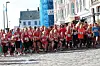 Start- og mål på kaia:Løypa er på 2,5 km og ble løpt to ganger. Feltet passerer her målområdet for søndagens Ironman, og de 92 deltakerne er allerede godt spredt.