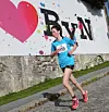 Vi elsker Haugesund: Elina Rovang ble nr. 4 på 22.28 og passerer et synlig bevis på at byen markedsfører at folk trives i Haugesund.