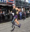 Halvnorsk:Sarah Reinertsen har mor fra Bodø og farsslekt fra Arendal, men er selv vokst opp i New York. Hun har Grete Waitz som sitt ideal. Hun var på byen i New York fra hun var ei lita jente for å se Grete Waitz vinne byens maratonløp. Hun er født uten leggbein og fikk foten amputert som sjuåring. Siden har det blitt mye løping med protese i gateløp med blant annet 8 maratonløp på merittlista. De siste årene er det blitt mest triatlon, og søndag er hun klar for Ironman 70.3 Haugesund. Irongirls Run ble tatt som lett oppvarming med kamera i hånden for å ta bilder underveis. Tida på 5 km: 32.35.