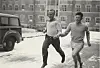 Bildet viser Rune Bruflot og Kjell Steinsholt (høyre) som løper inn sammen til en delt 2. plass i 1955. (Bildet er utlånt av Kjell Steinsholt og publisert på ÅS KOMMUNE sin side med samtykke fra ham). Løypa gikk før gjennom tunet på Berg Gård, men vil nå gå utenom. Den blir da noen meter lenger, men bakken opp til gården var hard.