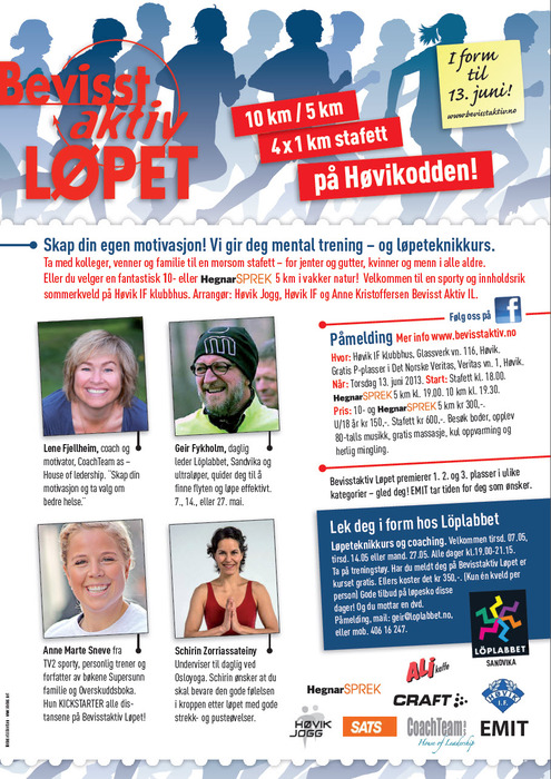 Bevisst Aktiv Løpet skal være et realistisk mål for mange og vi ønsker å motivere befolkningen til å bli enda mer bevisst aktive i forhold til egen helse gjennom fysisk aktivitetog trening.