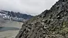 Det lå rester at et snøfelt i flanken til venstre, en dette hadde stort sett isdekke og var ikke helt egnet å bevege seg på. Uren ble grovere på vei nedover og det gikk temmelig sakte. Tidligere på sommeren ligger det et snøfelt store deler av veien ned, slik at man kan gjøre partiet unna på kort tid.