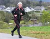 Kirsten Rognved på veg i mål etter runden rundt Eikangervågen. Løypa startar med ein unnabakke og sluttar med ein tung motbakke.