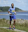 Varm sensommer: Selv om Kystleden Halvmaraton ble gjennomført så sent som 24. august ble det likevel svært varmt. Her løper Audun Rør inn på tida 1.33.12.