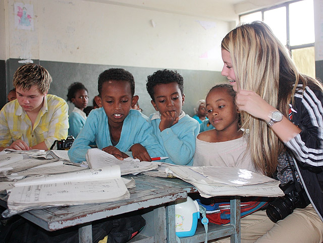 - På formiddagen tok vi turen til Knarvik ungdomsskule sin vennskapsskule i Addis. Denne skulen har 1200 elever. Vi vart teke imot som "heltar". Det gjer eit stort inntrykk å sjå kor takknemmeleg dei er for dei gavene vi hadde med oss. Vi vart impornert over glede, læringsiver, disiplin og engelskkunnskapane elevane heilt ned i barnehagen hadde.