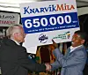 650.000 birr: Helge Brekke kunne overrekke en sjekk på nesten 200.000 norske kroner til tidenes langdistansekonge, Haile Gebrselassie, til hans skoleprosjekter for fattige barn.
