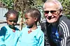 Preget av stundens alvor: To av de aller minste elevene var blyge på grunn av all oppmerksomheten, mens Helge Brekke smilte bredt i begeistring over gjestfriheten og livsgleden han møtte i et fattigt Etiopia.