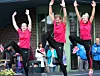 Musikk og dans: Også maratonløperne får varme opp til heftig musikk ledet av spenstige damer. Marartonmenn er ikke så flinke til slikt, og fortsatt er menn klart i flertall når det er maraton på norsk jord.
