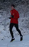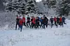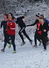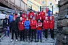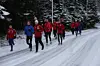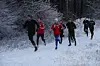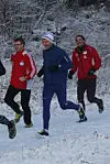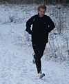 Løpere på rekke og rad i frostrøyken. Humør og fart på topp.