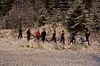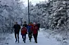 Stian Norheim, Erlend Sørtveit og Ole Martin Røssland danner fortroppen på vei mot Hordnesskogen.