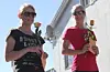"Blomsterpikene" på 10 km: Maren Nordstad Johansen (til v.) og Heidi Starheim. Esther Innselset på 3. plass var ikke til stede på premieutdelingen som nok drøyde litt lenge for de som ikke hadde satt av dagen til Dalamart'n.