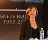 Daglige leder for Aktiv mot kteft:Helle Aanesen holdt en sterk tale om Gretes engasjement for organisasjonen. Hun fortalte at Grete holdt mange foredrag om trening for bedrifter og organisasjoner. Hun ga meg i oppdrag å forhandle om honoraret, og hele beløpet gikk til hjertebarnet, Aktiv mot kreft. Siste foredraget holdt hun bare en drøy uke før hun døde den 19. april.