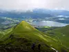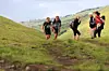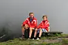 Trimmere kan ta seg en pust i bakken. Norleif Sunde og Hermann Olsen Sunde opplevde sola, men lenger oppe mot Saudehornet lå tåken tett Ørsta sett fra Vallahornet