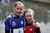 Nora Ø. Aarvik (Gneist) og Nina Tveite (Fana) fornøyd med gjennomføringen av sin 600m, det ble sølv og gull.