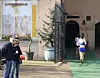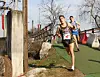 I Chinque Mulini må deltakerne løpe gjennom to møller, og de er i nærheten av fem. Her kommer de ut av det første kvernhuset, og vi skimter skovlene på vannhjulet til høyre i bildet.