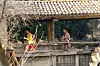 Selv om Jesus henger på veggen, er det nok ikke perleporten juniorjentene løper inn gjennom. De er på tur inn i en av møllene på en av bondegårdene langs løypa.
