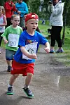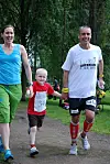 De litt større barna og noen få voksne gjorde seg så klar for sin sprint på 6 runder - 3 km. Om tempoet var høyt i første felt, gikk det enda fortere unna de første hundre meterne her. Det var flere som fikk kjenne på det litt ut i første runden allerede. Det ble litt skifte i tet, og litt mer spredning i feltet. Håper å få til et større felt her til neste år. En liten regnskur fikk de også på sin ferd, men det må ha vært deilig og nedkjølende!