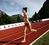 Vakrest i verden?Hvor finner man en friidrettsstadion med slike omgivelser? Det er gullvinner på 10.000 m, Tone Hjalmarsen, som flyter fram i postkortomgivelser. (Foto: Kjell Vigestad)