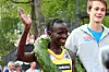 Peter Kurui er strålende fornøyd med 2. plassen i Gøteborgsvarvet og gratulereres av vinneren. (Foto: Ann-Christin Folmer)