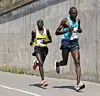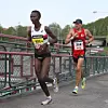 I herreklassen ble det ugandisk seier ved Jackson Kiprop. Her, med knappe 2 km igjen forsøker han å rykke fra kenyanske Peter Kirui som blir nummer to. Sluttidene deres blir 1.03.13 og 1.03.21. (Foto: Runar Gilberg)