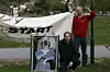 Kunstneren Kristoffer Helset er klar med litografiet "maske" som blir hovedpremien i Ålesund Maraton denne gangen. Til høyre ser vi arrangøren Per Jan Helset som også er klar som et egg.
