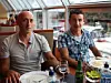 To rutinerte italienere med både halve og hele Ironman-konkurranser bak seg, koste seg på pastapartyet med flott utsikt til alle luksuscruiserne som lå til kai i flere rekker med ferierende nordmenn om bord, som er på tur langs kysten.