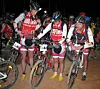 I fremste rekke: Bjørn Håvard, Malin og Jo Inge på plass i god tid før starten på sykkeletappen i ørkenen gikk kl. 04.