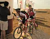 Jotun Paints stilte som vanlig lengst fram ved starten for den 94 km lange sykkeletappen. Det viste seg å være lurt fordi første velt kom allerede etter 100 m og langt framme i feltet, og det var mange som måtte av sykkelen med en gang og måtte gå i kø. Med en vei som ofte forsvinner uventet under sand, kan det bli mange bråstopp. Heldigvis var det ikke behov for ambulansen som arrangørene stilte som følgebil.